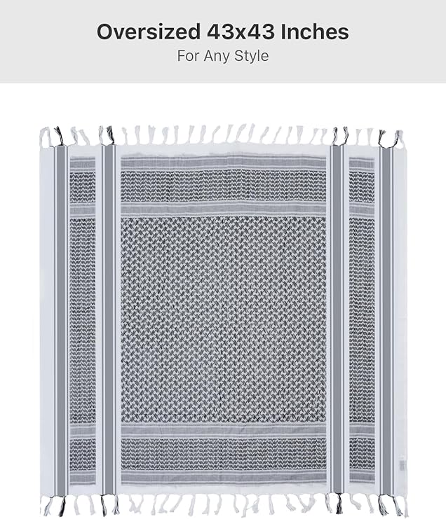 Tactical Shemagh Scarf – White Black Palestinian Keffiyeh